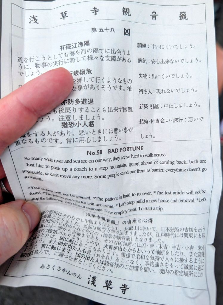 The first time didn’t end particularly well. At the colossal Sensõ-ji temple I got dealt bad luck.