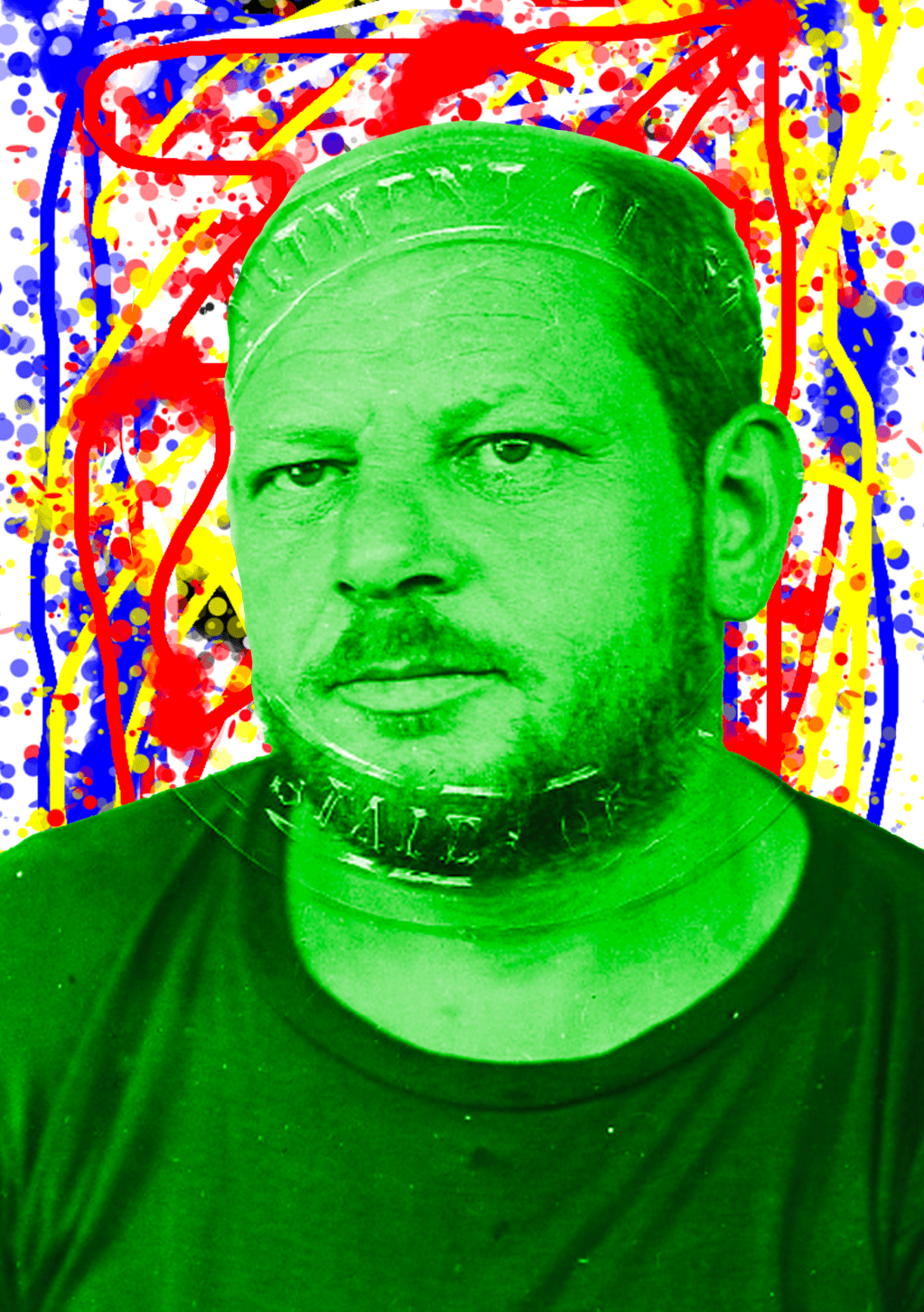The foreground image is of Jackson Pollock, taken from his passport, which is in the Smithsonian Collection.