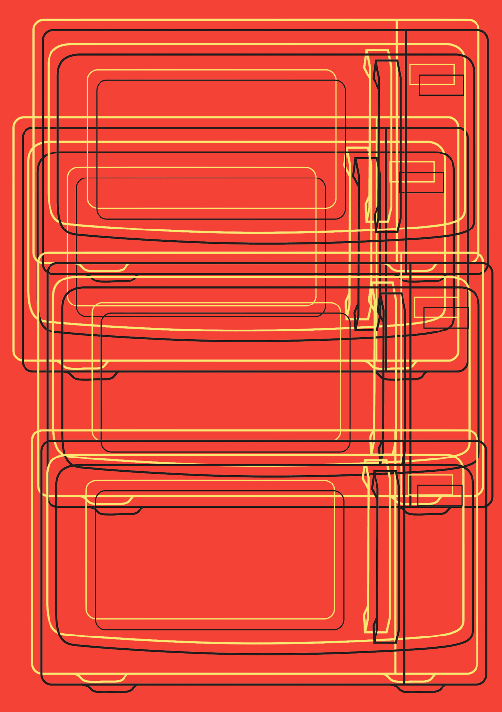 A microwave oven taken from the cover of its user guide, represented in three of my favourite colours.