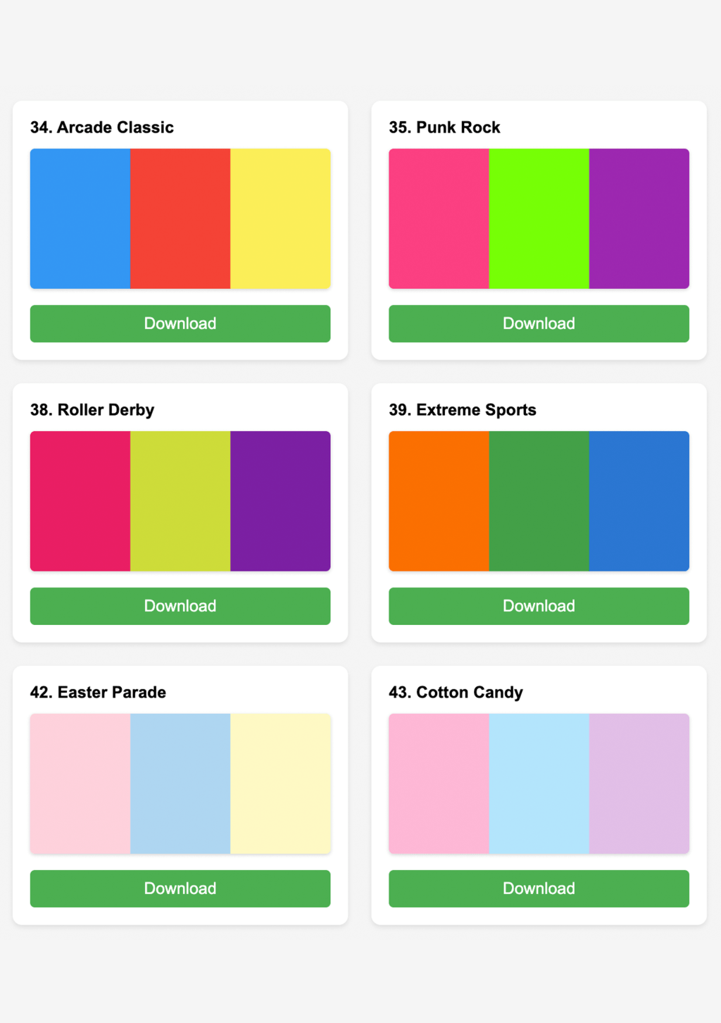 This is a screenshot of the app I wrote, which generated the palettes used to create the majority of the images in this book. It was a great creative aid, helping me make fewer decisions along the way. You can see the app yourself at: https://experiments.randomthebook.com/ColourSwatches